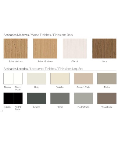 Acabado: laminar decorativo colores madera según muestrario de colores. Lacados opcional, consultar.