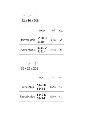 (5150): 208 Alto x 52 Ancho x 30 Fondo - Capacidad Fondo 30 cm: de 19 a 24 pares aprox.