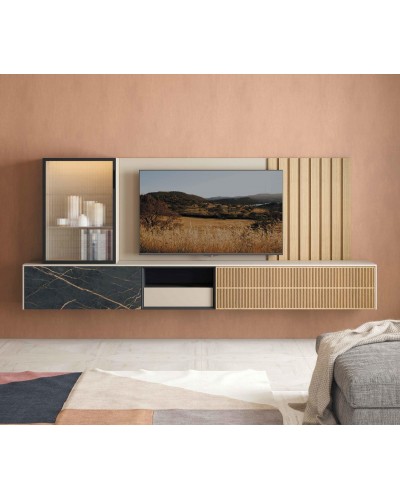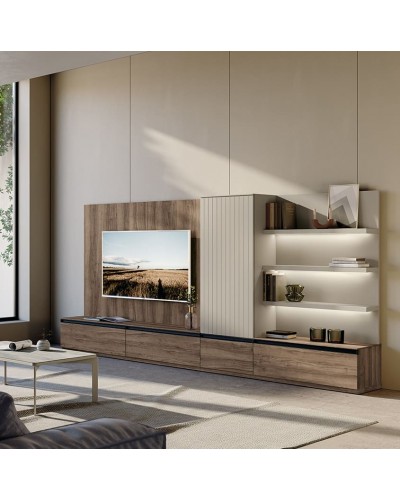 Cajonera en mueble tv y luces led no incluido (Opcional consultar)
