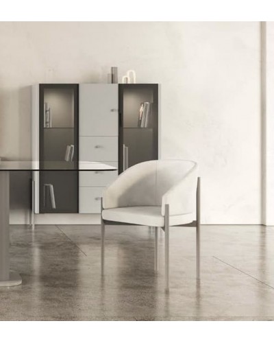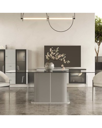 Diseño envolvente y elegante en tu comedor con esta composición Nala. Curvas suaves, cristal ahumado y encanto contemporáneo.