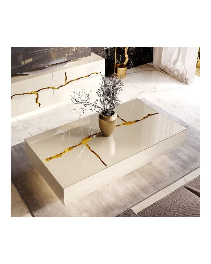 Eleva tu experiencia de entretenimiento con nuestra elegante mesa de centro de la colección Luxury. Su diseño contemporáneo y líneas se combinan armoniosamente con el brillo del lacado beige y los detalles en laminado en pan de oro, destacando de manera impresionante en tu sala de estar.