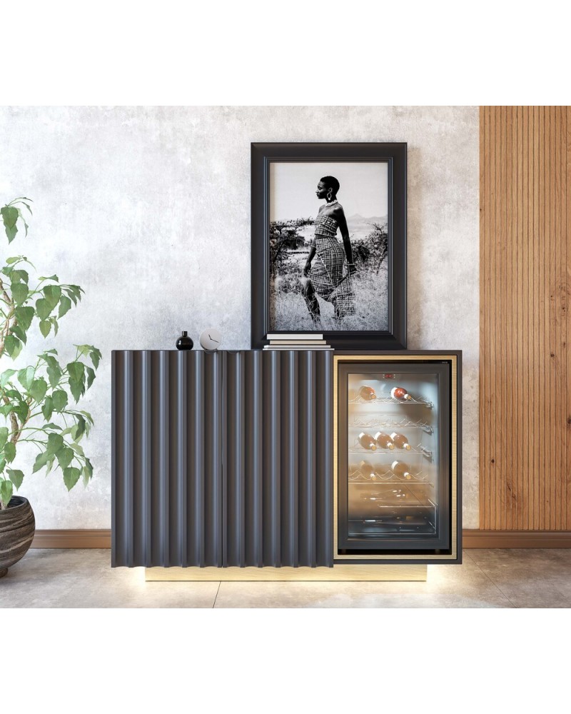 El aparador con vinoteca de la colección Orión combina funcionalidad y estilo. Con un diseño elegante y la incorporación de una vinoteca, este mueble ofrece almacenamiento versátil y un toque moderno para tu espacio.